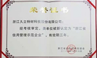日前,為促進企業加強信用管理體系建設,經公司申報,省工商局、省企業信用促進會考核測評,公司被認定為“浙江省信用管理示范企業”。