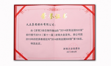 由《浙商》雜志推出的“2014浙商全國500強”排行榜于2014(第十一屆)浙商大會發布。